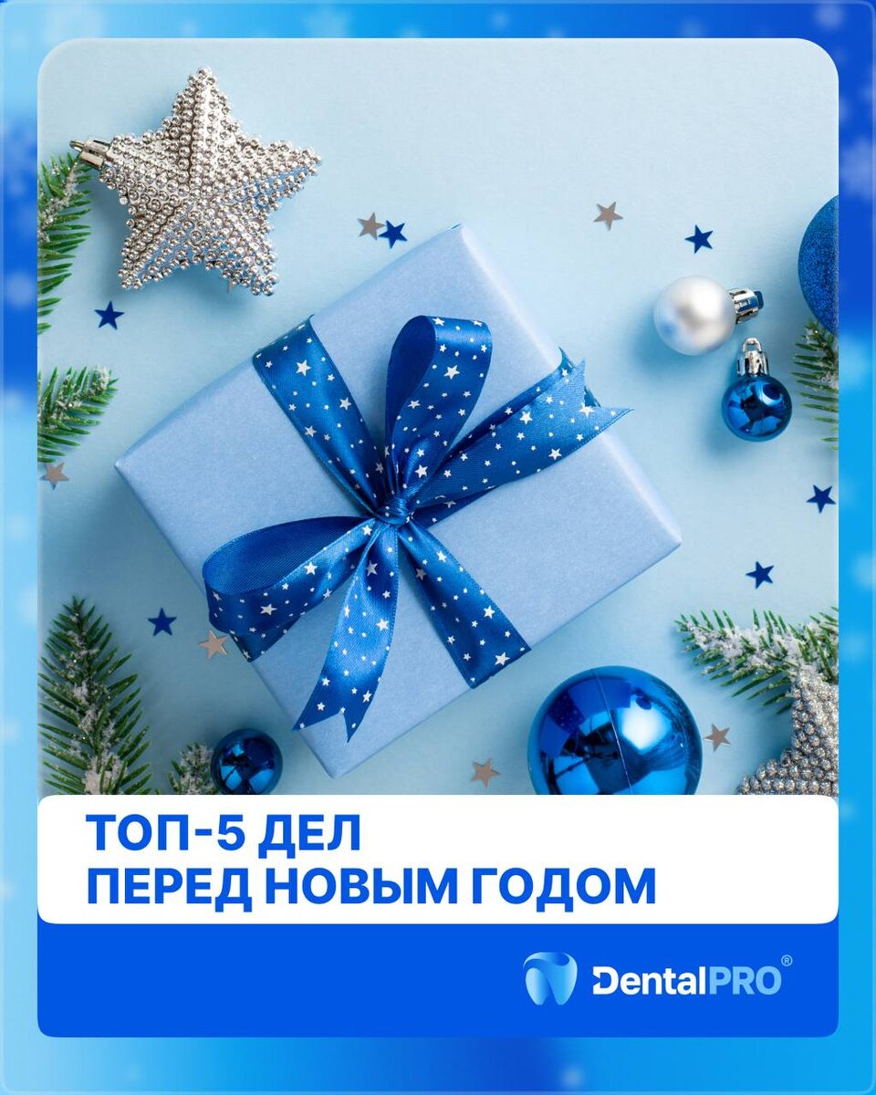 🎄 2️⃣6️⃣ До Нового года всего один день! Столько всего ещё нужно успеть. Специально на этот случай мы подготовили для вас список дел, которые обязательно нужно завершить ✔️ Сверьтесь с нашим списком, чтобы ничего не забыть: ✨ Купите продукты для праздничного стола или заранее забронируйте столик в заведении. Этот вопрос лучше не откладывать до 31 декабря. ✨ Найдите фильмы для новогодней ночи и придумайте активности для себя и гостей. ✨ Разошлите приглашения тем людям, с кем планируете праздновать. Прикольное приглашение — часть новогодней атмосферы. ✨ Приобретите оставшиеся подарки для близких и друзей. ✨ Не забудьте принять участие в новогодней акции DentalPRO 🦷 Что из этого списка вы уже успели сделать? Расскажите об этом в комментариях к посту ⬇️
