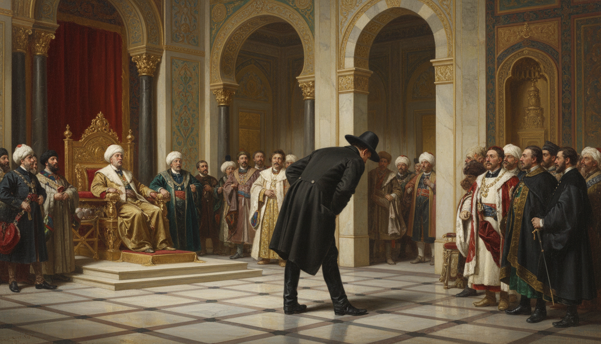 Апрель 1853 года, дворец султана Абдул-Меджида I в Константинополе. Двери зала для аудиенций внезапно распахнулись. Все придворные замерли. Русский посол князь Александр Меншиков шагнул внутрь спиной вперёд, согнувшись пополам. Султан побледнел. Его идеальный план только что рухнул прямо у него на глазах. Но обо всём по порядку. Три месяца назад в Константинополь прибыл светлейший князь Александр Сергеевич Меншиков. Правнук того самого Меншикова — фаворита Петра I, человека, который из простолюдина превратился во всесильного временщика. Нынешний Меншиков получил от императора Николая I деликатную задачу: договориться с Османской империей о правах православных христиан в Палестине. Формально — переговоры. Фактически — ультиматум. Дело в том, что незадолго до этого в Палестине разгорелся конфликт между православными и католиками за контроль над христианскими святынями. Франция пригрозила Турции военным вмешательством. Османы испугались и уступили католикам. Николай I решил: пора напомни