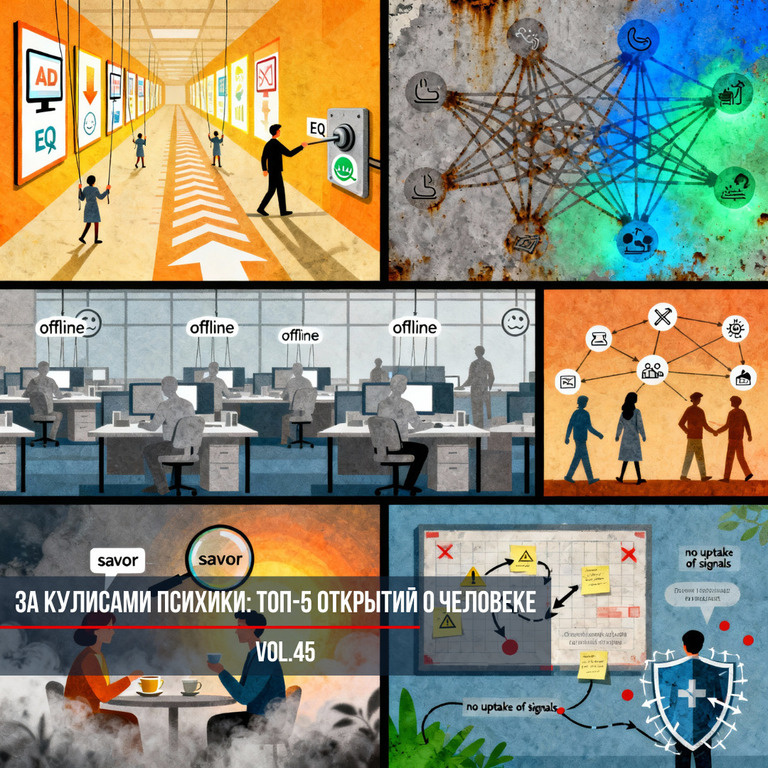 Vol.45 1️⃣ Ваши решения вам не принадлежат: визуальные стимулы взламывают мозг Люди с высокой чувствительностью к сигналам среды становятся марионетками: они не могут обновить свои убеждения, даже когда ситуация изменилась. Исследование декабря 2025 года доказало, что наш мозг часто просто выполняет команды «видимых» триггеров, игнорируя логику и здравый смысл, что ведет к зависимости от обстоятельств. 💡 Откладывая развитие EQ человек соглашается на любое отношение к себе. Источник: https://vk.cc/cSVrDj 2️⃣ Старение мозга – это выбор, а не неизбежность Новые данные 2025 года опровергают миф о необратимости угасания. Изменения в образе жизни способны не просто замедлить, а реально омолодить нейронные связи. Мозг сохраняет пластичность до глубокой старости, если вы даете ему правильную нагрузку, а не позволяете «ржаветь» в рутине. 💡 Правильная биохимия залог успеха, а перекосы это проблемы, эмоциональные переживания нарушают биохимическую ось, это приводит к проблемам со здоровьем