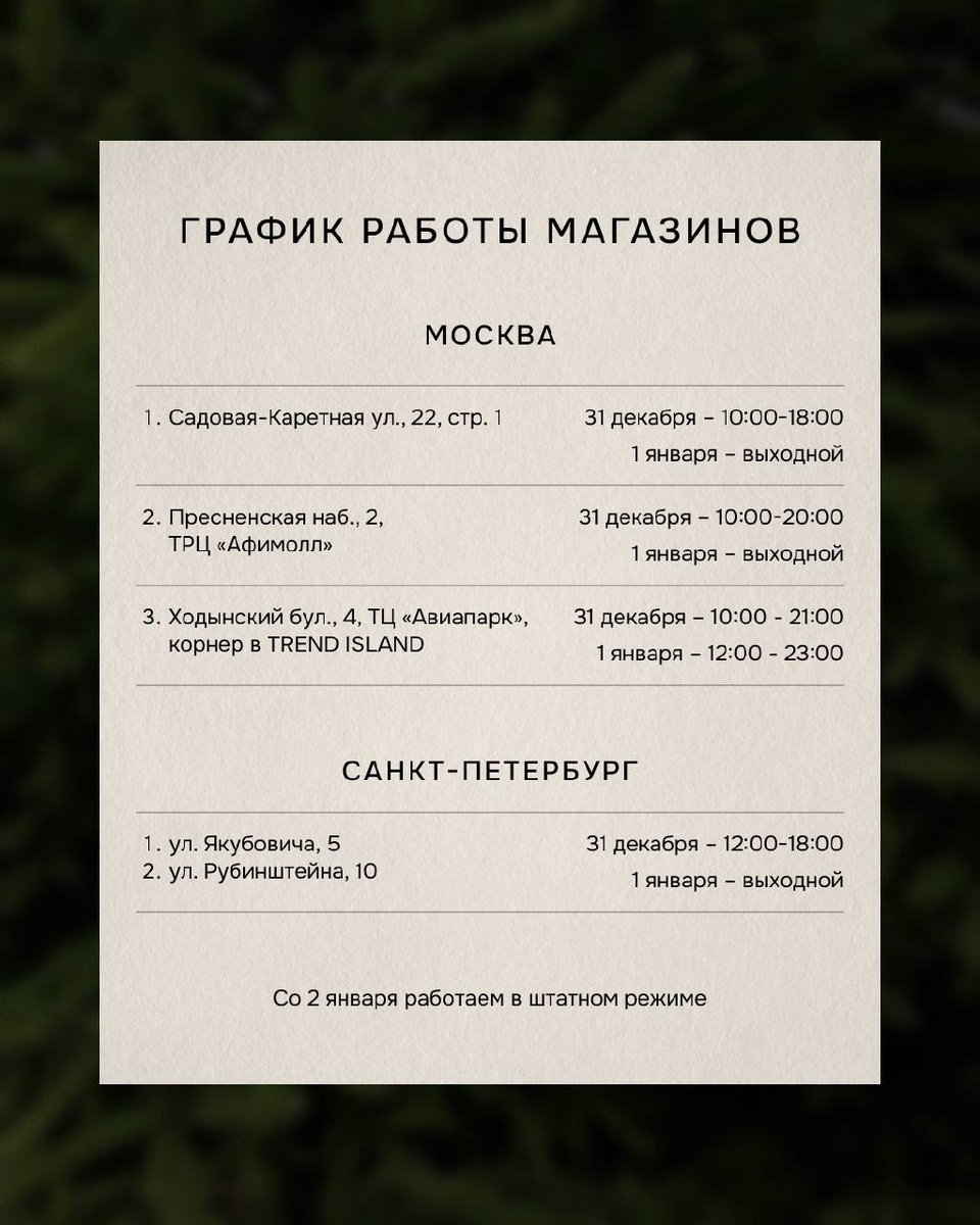 В преддверии новогодних праздников рекомендуем учитывать график работы магазинов NAIPACHE при планировании визита.