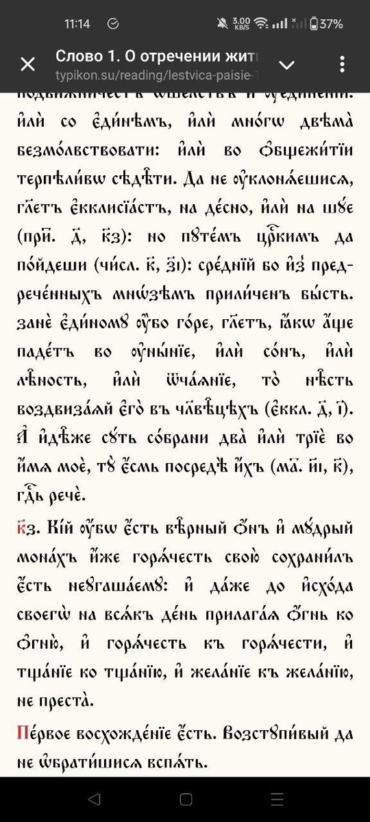 ! В конец года представляем вам двойной подарок: - на нашем сайте появилась поддержка церковнославянского шрифта (в Юникоде) - и первой книгой, набранной в цс-формате (о чем давно уже спрашивали подписчики), будет Лествица в славянском переводе прп. Паисия Величковского. Вводные главы и первое слово уже залиты на нашу платформу. В мобильном приложении будет пока отображаться шрифтом OldStandard, но поддержку ЦС мы также добавим туда в новом году. С наступающим гражданским новолетием и святыми рождественскими днями! С праздниками!