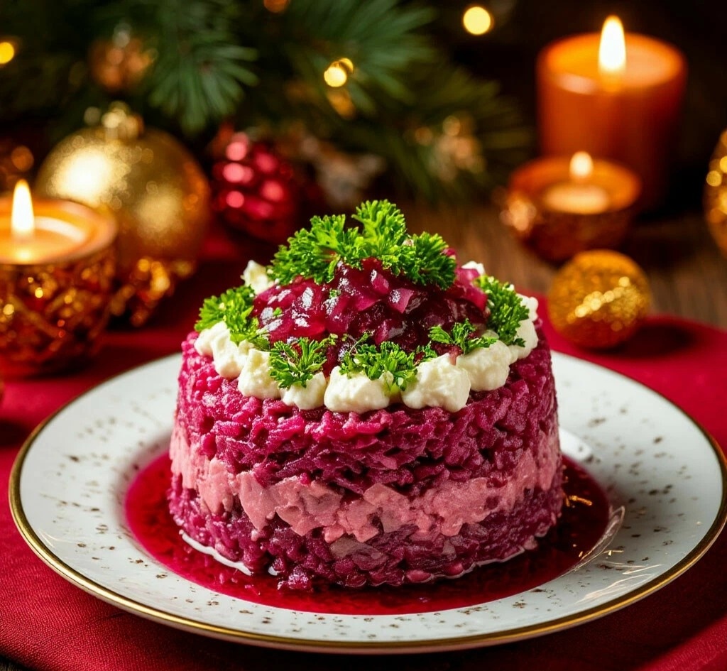 Мяу, ценители многослойной вкуснятины! 🐟 По вашим голосам — серебряный призёр нашего хит-парада! Селёдка под шубой — это не просто салат, это целая конструкция из ярких слоёв, которая создаёт неповторимую гармонию сладкой свеклы, солёной рыбы и нежных овощей. Готовим заранее, чтобы он как следует «поженился»! 💑