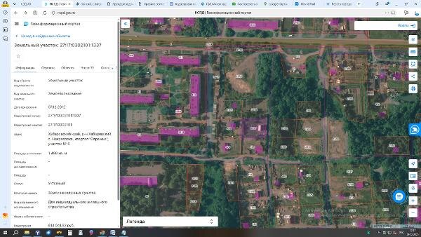 Название: земельный участок с кадастровым номером 27:17:0302101:1337, площадью 1498 кв.м., местоположение: Хабаровский край, р-н