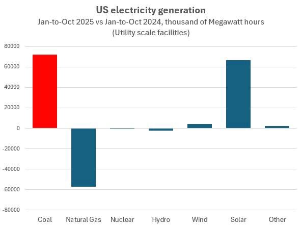 Почти наверняка уголь станет основным источником дополнительной выработки электроэнергии в США в 2025 году, компенсируя значительное