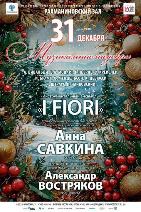 31 декабря 2025 в 19:00 в Рахманиновском зале Московской консерватории состоится праздничный концерт «Музыкальные шедевры». На сцену выйдет инструментальный ансамбль «I Fiori» и его художественный руководитель и солистка - скрипачка Анна Савкина. https://www.classicalmusicnews.ru/anons/savkina-i-fiori-farwell-2025/?utm_source=cmn_own&utm_medium=telegram 🎼 ClassicalMusicNews.Ru | Telegram | ВК | МАКС