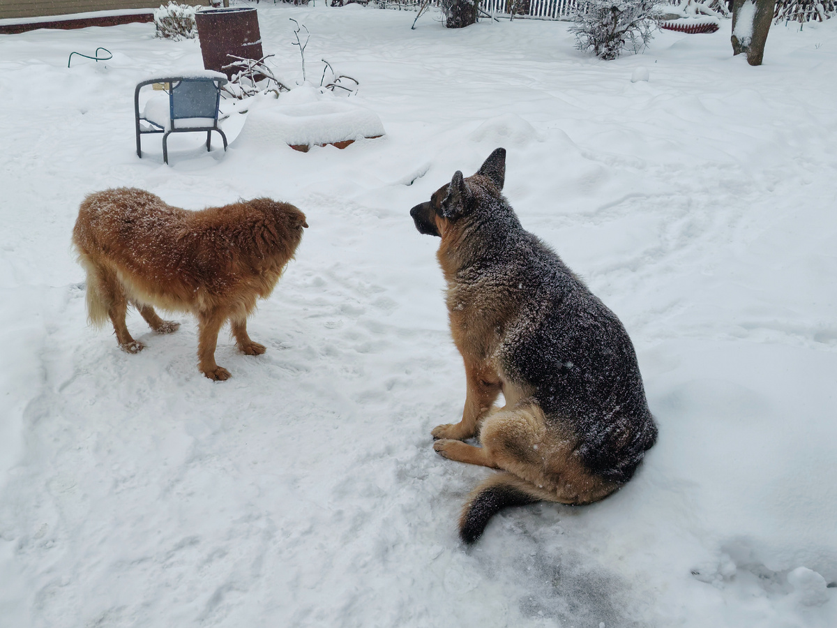 Вот такие заснеженные ходят по участку, гавкают, и не хотят идти домой!