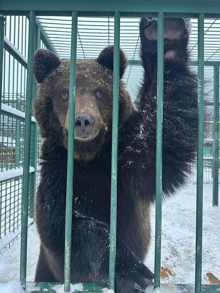 Медведь Степан радуется новому дому в центре «Легенда». Напомним, спасенный с притравочной станции мишка новоселье справил в начале декабря.