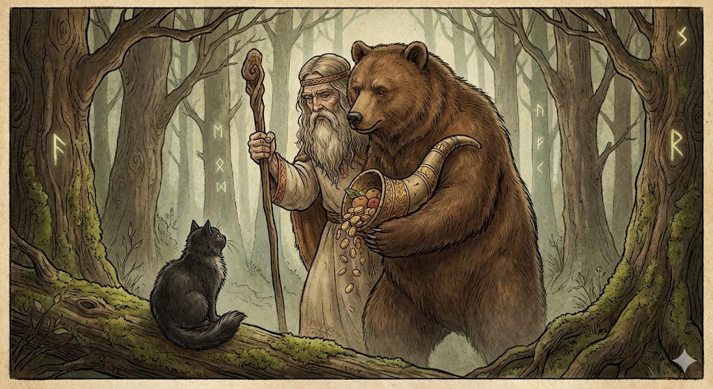Мур-привет, мои ищущие истину! 🐻🌲 Сегодня мы говорим о Том, чье имя шепчут деревья в лесу и чье дыхание чувствуется в морозном воздухе. О великом Велесе. В пантеоне славянских богов он стоит особняком. Пока громовержец Перун мечет молнии с небес, наводя порядок силой, Велес хранит мудрость в корнях мира. Он — бог-чародей, бог-оборотень, покровитель знаний, торговли и... магии. Почему же такого могущественного бога называют обидным, на первый взгляд, прозвищем «Скотий бог»? И зачем ему, дарителю богатств, связь с мрачным миром мертвых? Давайте распутывать этот клубок. Многие современные люди думают: «Фи, какой-то покровитель коровников». Это глубочайшая ошибка! В древности, когда еще не было ваших бумажных денег и кредитных карт, мерилом богатства был «скот». Количество голов в стаде определяло статус человека, его сытость и выживание рода. Слово «скот» было синонимом слова «деньги», «казнохранилище», «богатство». Велес — не пастух. Велес — Хранитель Изобилия.