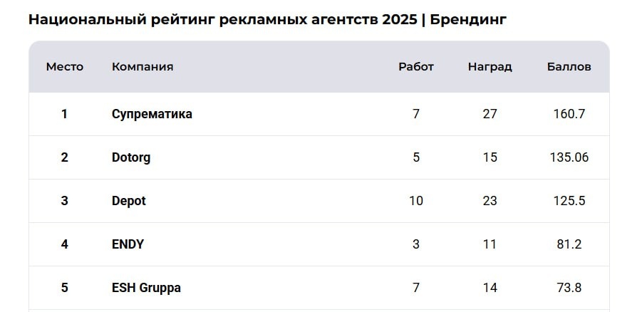 👏 «Супрематика» — лидер категории «Брендинг» Национального рейтинга рекламных агентств Sostav