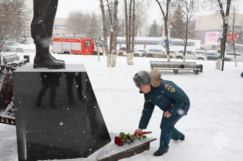 Руководство и сотрудники Главного управления возложили цветы к скульптурной компoзиции «Российскому спасателю»