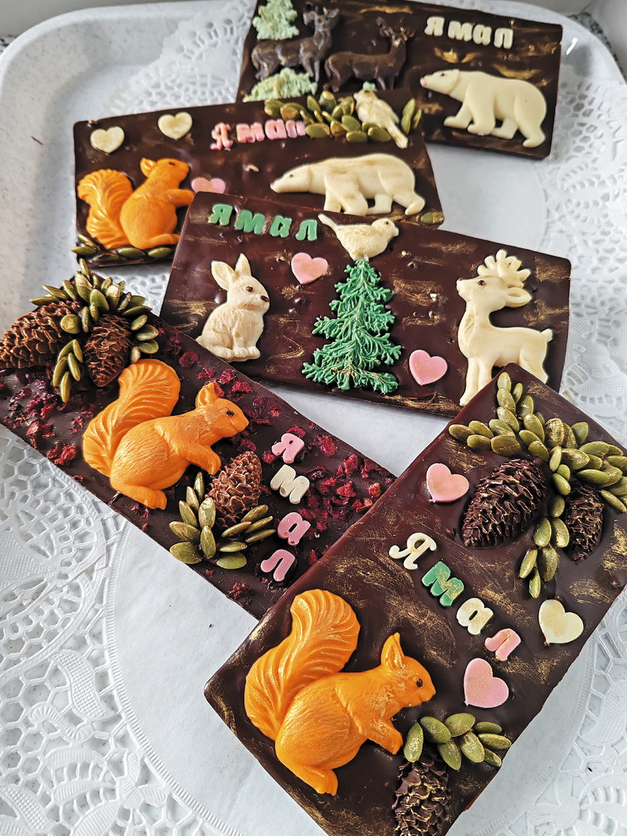 Неважно, стал ты ямальцем по праву рождения или по собственному выбору. Север остается в сердце навсегда у всех, кто жил здесь хотя бы несколько лет. Северяне не теряют из вида земляков и всегда готовы вспомнить годы, проведенные на Ямале. Это теплое чувство разделяют и муравленковские предприниматели, создавая памятные, оригинальные, дизайнерские, в том числе и съедобные изделия с ямальской символикой. Иван Головцов: – Очень любим Север, уезжать не планируем. Один из символов Ямала – наши северные ягоды. Мы часто изготавливаем на заказ брелоки и другие изделия с изображением брусники, черники. Но, конечно, морошка – самая популярная. А еще муравленковцы сразу обращают внимание на мини-копии нашей Белки-грелки. Ирина Бежанишвили: – Традиционная культура коренных жителей Ямала вдохновила меня на создание тематической коллекции вязаных игрушек. Истинный хозяин тундры – медведь, один из главных символов Севера, мишки и стали героями моей коллекции. Первым стал мишка Оленевод. Потом появи