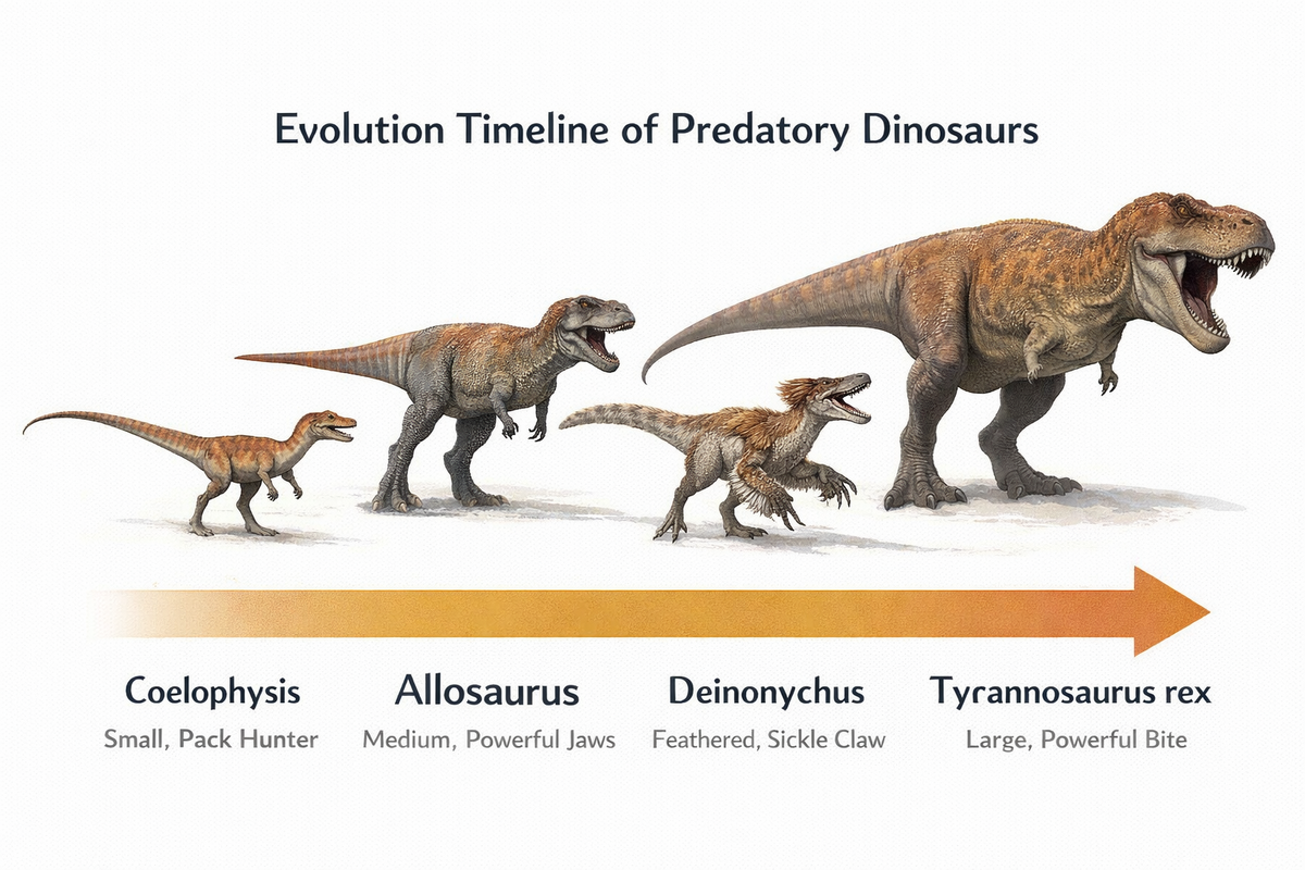 Хищные динозавры (тероподы) не появились сразу такими, как в «Парке Юрского периода». Их история — это гонка вооружений, где оружием были скорость, интеллект и специализация.