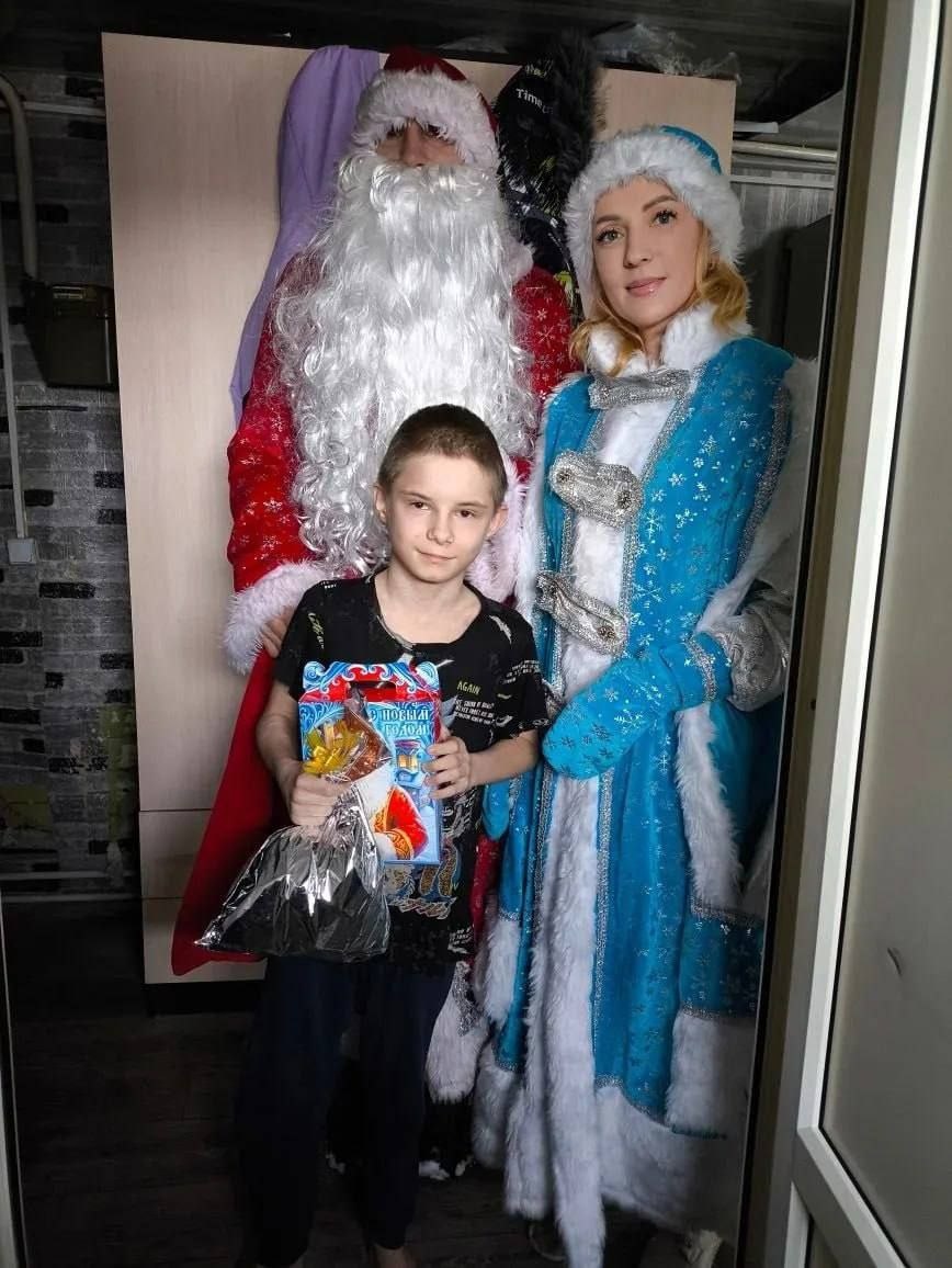 В преддверии новогодних праздников в станице Филоновской Дед Мороз и Снегурочка посетили детей, чьи отцы выполняют свой воинский долг в зоне