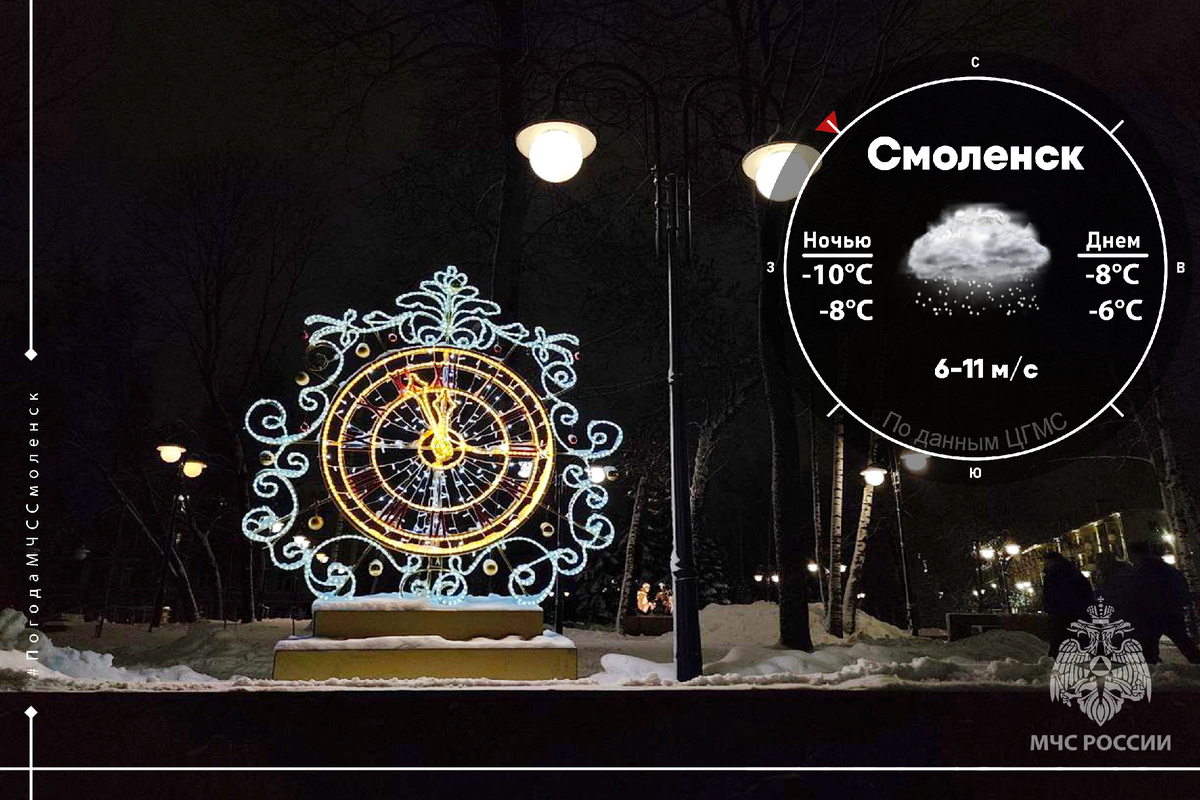 Последний день уходящего 2025 года подарит жителям и гостям Смоленщины облачную погоду с небольшими осадками. По прогнозам синоптиков, временами ожидается слабый снег, который станет немного интенсивнее ближе к ночи, перейдя местами в умеренные осадки. Кое-где дороги останутся скользкими из-за гололедицы. Ветер подует северо-западный, 6-11 м/с. Температура воздуха: - по области: ночью -11°С…-6°С, днём -10°С …-5°С, - в Смоленске: ночью -10°С …-8°С, днём -8°С …-6°С. Атмосферное давление 719 мм рт. столба, будет расти. 📌Новогодняя ночь традиционно сопровождается яркими праздничными салютами и множеством искрящихся огоньков бенгальских свечей. Пользоваться пиротехникой нужно на улице, вдали от жилых домов, деревьев и легковоспламеняющихся предметов. Пиротехнические изделия стоит приобретать только у проверенных продавцов, обращая внимание на целостность упаковки и наличие инструкций по применению. #МЧСРоссии #ПогодаСмоленск #МЧС_Смоленск #Смоленскаяобласть Подписывайся на МЧС Смоленск в