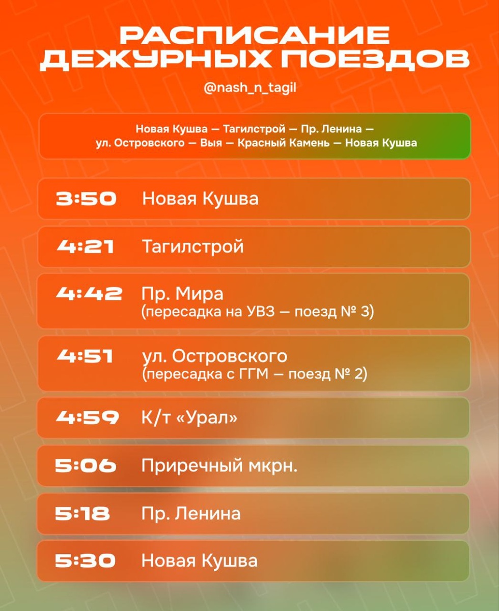 Все праздничные дни транспорт работает по расписанию выходного дня. Количество автобусов на маршрутах меньше не станет. При этом «Тагильский трамвай» запустит дополнительные рейсы — они будут ездить с 3:26 до 5:30 утра. 📍Подписаться | Предложить новость | Дать «буст»