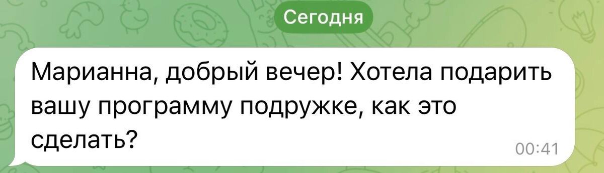 ✅оформляете на себя программу - вносите свои данные и оплачиваете ✅пишите мне @MariannaSpivak что хотите эту программу подарить и я делаю приглашение вашей подруге (маме, сестре) При этом тот кому вы дарите не будет видеть стоимость - квитанция прийдет вам при оплате. Сегодня еще действует скидка и подарок на программу «Мои красивые глаза» https://taplink.cc/cosmosfacefitness/p/108589f/