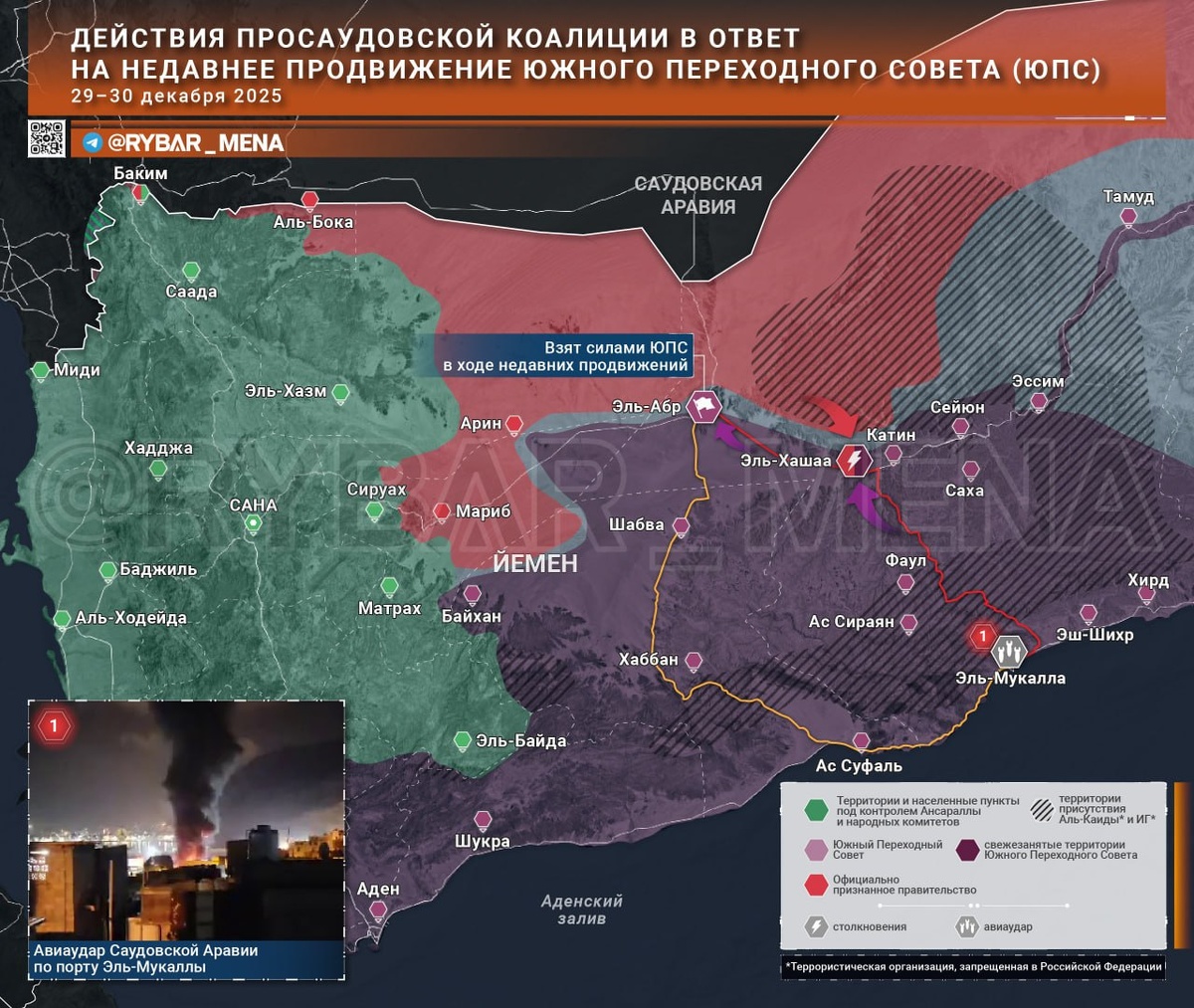 🔸После недавних переговоров между саудитами и эмиратцами в Адене, которые не привели к какому-либо консенсусу, просаудовские прокси в виде официального правительства дают о себе знать. И не только они: саудовская авиация нанесла удар по двум судам, пришедшим из эмиратского порта Эль-Фаджира в йеменском городе Мукалла, контролируемом Южным переходным советом (ЮПС). 🔸Формальным поводом для удара, по заявлению саудитов, явился тот факт, что судна не получили официального разрешения на вход в портовую зону. Однако, очевидно, что два судна из ОАЭ, пришедших к эмиратским прокси в Йемене будут везти в том числе и военные грузы. Одновременно с этим в районе деревни Эль-Хашаа с вечера прошлого дня шли бои между ЮПС и правительственными силами. 🔸Еще недавно мы писали, что официальное правительство Йемена при поддержке саудитов может закладывать почву для ответных действий на агрессию ЮПС. Теперь мы видим, как этот план воплощается в жизнь. Предварительное сближение с хуситами в виде обмена пл