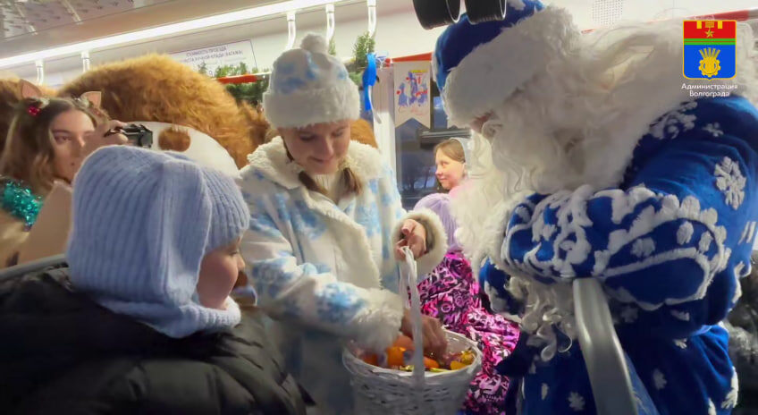 Дед Мороз, Снегурочка и Чебурашка прокатились на скоростном трамвае в Волгограде