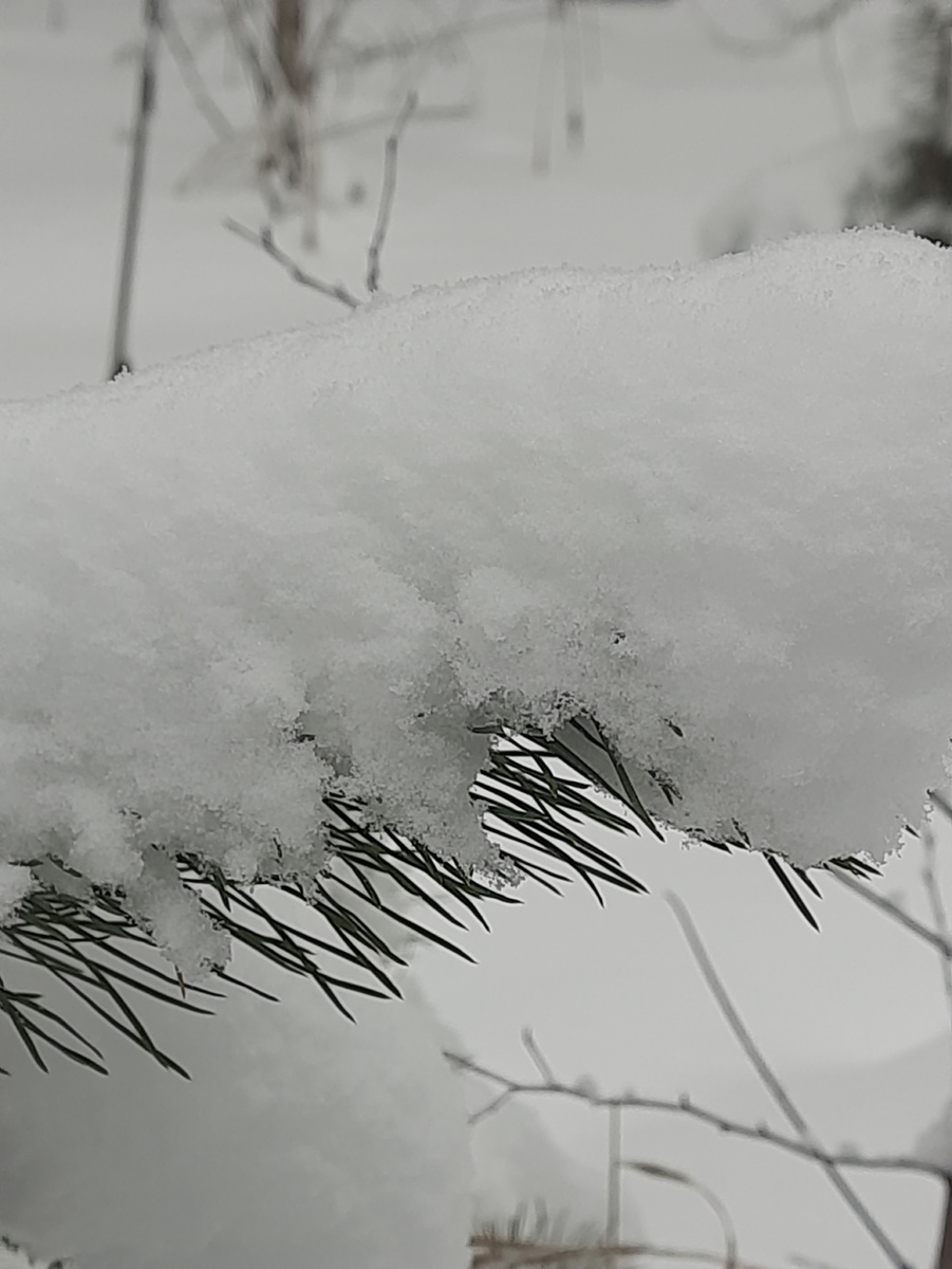 Сосновые иголочки тоже оказались под снегом.