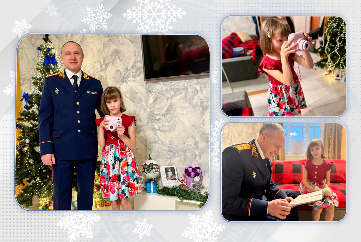 Руководитель Восточного межрегионального следственного управления на транспорте Следственного комитета Российской Федерации Алексей Анатольевич Александров в рамках Всероссийской акции «Ёлка желаний» навестил 9‑летнюю Алису, поздравил её с наступающим Новым годом и подарил фотоаппарат с мгновенной печатью фотографий — именно такой подарок девочка загадала. Во время встречи Алиса с неподдельным интересом открыла подарок, сделала первые снимки, рассказала о своих увлечениях, друзьях и младшей сестре. С гордостью она показала Алексею Анатольевичу школьный дневник с оценками «отлично» и поделилась, что её любимый предмет — математика. «Алиса — очень активный и творческий ребёнок, любит рисовать и петь. Фотоаппарат будет помогать ей развивать желание запечатлеть яркие и добрые моменты детства», — поделилась мама девочки, Дарья Геннадьевна. В завершение встречи Алексей Анатольевич поздравил семью Алисы с Новым годом и пожелал им благополучия, здоровья и положительных эмоций. «Участие в подоб