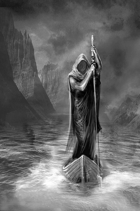 Харон — сын Эреба (мрака) и Нюкты (ночи), служитель Аида, владыки подземного царства. Его главная обязанность — переправлять души умерших через реки Стикс и Ахерон в мир мёртвых.