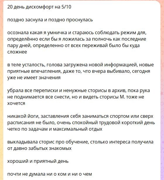Всего за 20 дней фокус внимания переключился на расставания на себя, свои потребности и желания