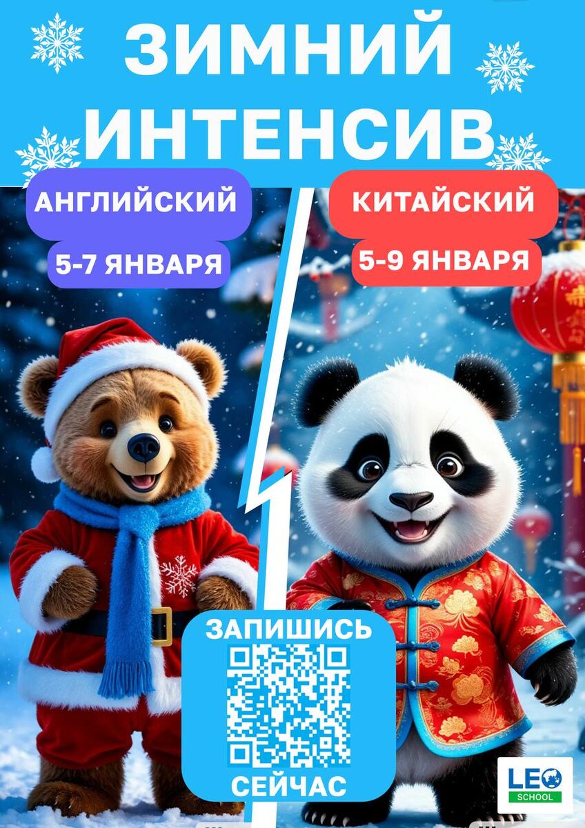 ! ☃️ Ведь у нас есть: 2-х часовая практика Английского или китайского в программе «Зимний интенсив». 🎄 Интересно? Тогда записывайтесь уже сейчас! @LEO_SchoolBot