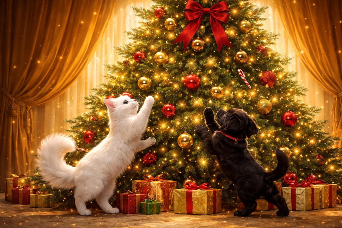 Украшенная елка и любопытные лапки кота — классический декабрьский конфликт. Чтобы праздник не закончился разбитыми шарами и перевернутым деревом, следуйте этому плану. Шаг 1: Обеспечьте устойчивость. закрепите елку максимально надежно: используйте массивную и тяжелую подставку. Дополнительно привяжите верхушку ёлки прочной леской или рыболовной нитью к карнизу, гардине или крючку в стене. Это сделает конструкцию более крепкой. Шаг 2: Создайте физическое препятствие. Установите елку в углу комнаты, ограничив доступ с двух сторон. Обнесите ее невысокой декоративной оградой, большой коробкой с подарочной бумагой или даже манежем для детей. На первое время можно окружить основание ёлки фольгой или двусторонним скотчем — многие кошки не любят эти текстуры. Шаг 3: Выбирайте безопасные украшения Снизу и посередине: используйте небьющиеся украшения из дерева, ткани, пластика или вязаные игрушки. Крепите их на проволоку или плотно завязывайте, а лучше — пришивайте петельки. Бьющиеся шары и цен