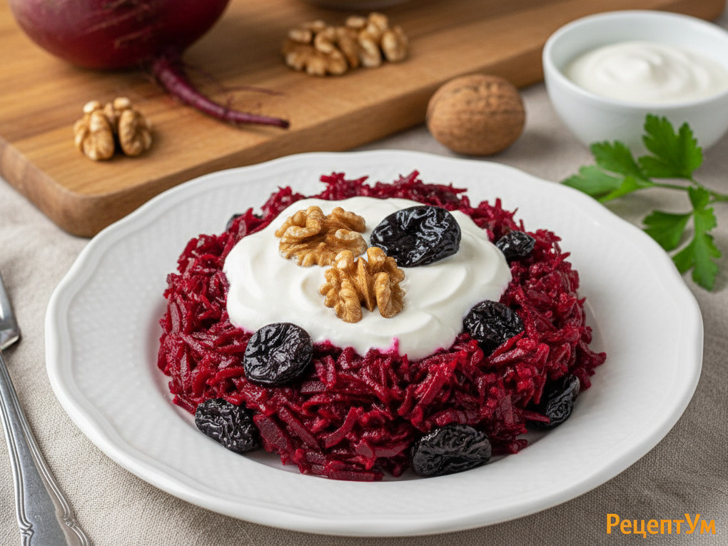 Салат из свеклы с черносливом и орехами — настоящая кладезь витаминов и минералов! Свекла богата фолиевой кислотой и железом, поддерживает сердечно-сосудистую систему и улучшает пищеварение. Чернослив содержит калий для здоровья сердца, а грецкие орехи — омега-3 жирные кислоты для работы мозга. Клетчатка в составе помогает очищению организма и дает длительное чувство насыщения.