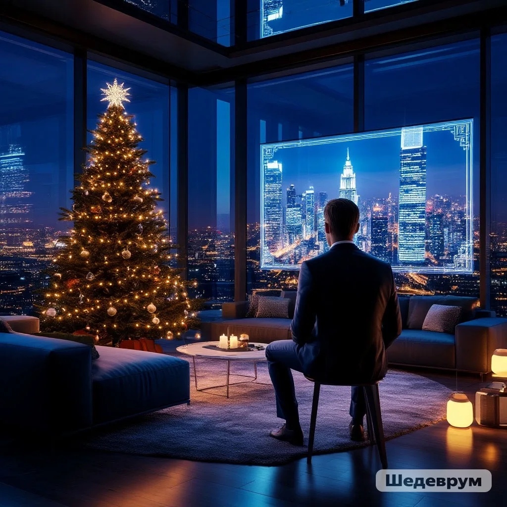 2047 год. Москва. В квартире на 37‑м этаже «Вертикального квартала» Александр Воронов в десятый раз за вечер проверял настройки домашнего ИИ‑ассистента или как его сокращенно называли Дииа. "Эх!" - с горечью подумал Александр. - "Завтра Новый год, а у меня даже ёлки нет! Что за времена наступили? О себе ни секунды подумать нет возможности! Даже вдох-выдох по расписанию!" — Дииа, установи статус праздничного протокола. — скомандовал он, застёгивая манжету коммуникатора. - Новый год, как-никак, что ж мы не люди с тобой что-ли? — Протокол «Новый год» активирован на 43 %. Недостающие элементы: живая ёлка -рекомендуемый размер не менее двух метров высотой. Традиционные блюда - оливье, селёдка под шубой. Фейерверк - виртуальный или реальный на ваше усмотрение. — отчеканил синтезированный голос. Александр грустно вздохнул. В его расписании на ближайшие 72 часа не было ни минуты свободного времени — завтра в 10:00 запуск долгожданного «Проекта Феникс», от которого зависела карьера. — Отм