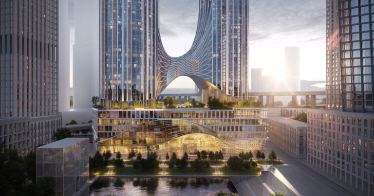 Москва снова тянется вверх: власти утвердили проект самого высокого жилого небоскреба в Европе — на месте бывшего микрорайона Камушки. Проект появлялся и раньше, но без подробностей. Теперь можно узнать, что говорят официально. Построят ЖК в виде двух труб рядом с «Москва-Сити» — в будущем районе «Сити-2» во 2-м Красногвардейском проезде. Речь о жилых башнях, объединенных стилобатом. Самая высокая — 384 метра, до 96 этажей. Вторая башня чуть ниже — всего 83 этажа. Под землей запланировано еще пять уровней — под паркинг и технические помещения. Общая площадь комплекса — больше 280 тыс. «квадратов». Помимо квартир здесь обещают офисы, общественные пространства, досуг, коммерцию и благоустроенную крышу на высоте примерно 9 этажей. Архитектура максимально футуристичная — вытянутые формы, скругленные линии, стекло и вертикаль. Этот проект явно хочет потягаться с «овальным» небоскребом, который проектировали при участии самого Сергея Кузнецова. Предполагается, что башни должны аккуратно вста