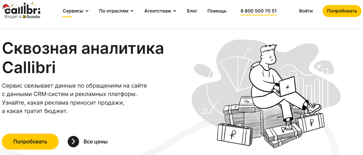 Сервис сквозной аналитики и коллтрекинга для малого и среднего бизнеса. Подходит для компаний с ограниченным бюджетом.