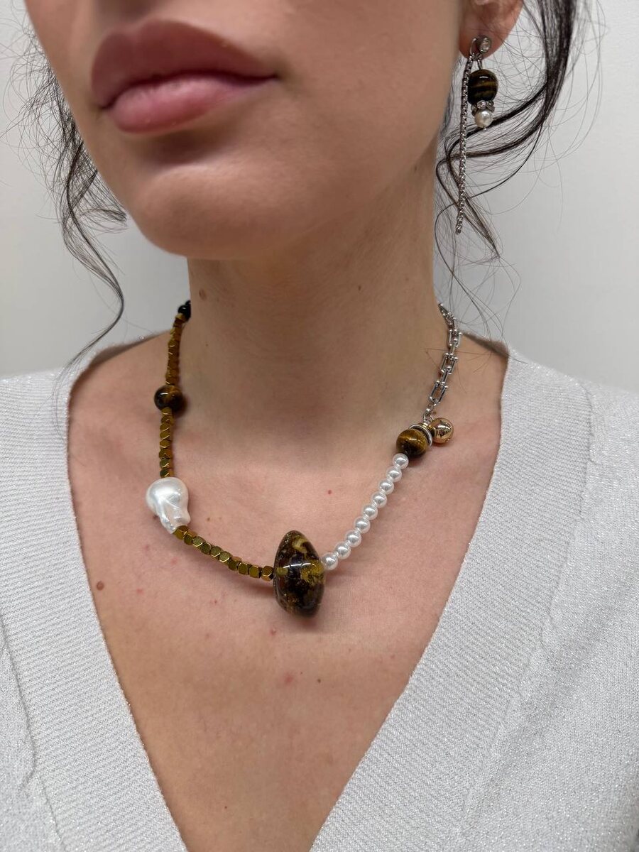 ».👌🏻 Неброское, но с характером: стекло с тёплым оттенком, округлые камни, мягкий блеск жемчуга и лёгкая асимметрия. Такое колье не требует повода — оно спокойно вписывается в повседневный образ и делает его особенным. Надели с трикотажем, рубашкой или платьем — и образ уже выглядит продуманным. Идеально для тех, кто не любит часто менять украшения, но хочет выглядеть аккуратно и стильно каждый день. А если вы все еще в поиске подарка к Новому году, у нас есть подарочные сертификаты — универсальный и всегда удачный вариант ✨ Колье 7800 Серьги 5100 ✨Нажмите для заказа ✉️ Нажмите чтобы задать вопрос