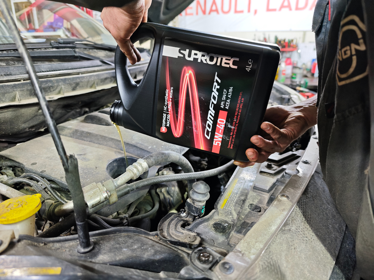 Всем привет! Прошёл год с последнего ТО Колеоса. Пробег 176 000 км. По работам было нацелено следующее: замена разъёма (снова) противотуманной фары, масла в двигателе, фильтров (салонный, воздушный, топливный, масляный), уплотнительного кольца сливной пробки масла. Вот уже много лет использую масла и автохимию Супротек на Дастере , поэтому пора и Колеос побаловать). @suprotec В официальном шоуруме приобрёл две канистры по 4 литра масла Suprotec Comfort 5W-40 (артикул 124367 , 4500 за одну канистру, в каталогах по артикулу 3800 руб). Гидрокрегинговое масло для дизелей, бензинок и газовых ДВС). Заявлено, что его свойств хватает на 10 000 километров. Я как раз меняю раз в 10 тысяч километров масло. Даже в приборку вшил это вместо 15 тысяч (и на Дастере аналогично). Отправился в автосервис БМ Сервис на замену на Воздухоплавательную дом 11. Можно на месте приобретать запчасти и масла, можно со своими. Заранее приобрёл следующие позиции: - масляный фильтр вставка Renault 8200362442 (но вн