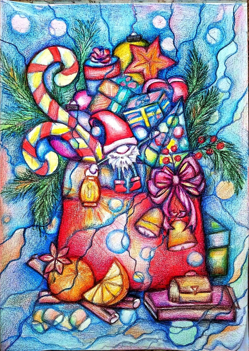 ". Он наполнен не только коробками , бантиками ,колокольчиками , игрушками. Рядом с ёлкиными лапами😁 ,мандаринами и конфетами в мешочке эмоции счастья , Рождественское таинство , дразнящие ароматы аниса и корицы и ...кое что ещё 🫶🫶🫶❄️❄️❄️❄️❄️🎄🎄🎄 Спасибо Людмила Андреевна за мешок с подарками❤️❤️❤️ искренне верю в каждый из них волшебный🫶💥🫶. Обязательно нарисую и остальные чудеса🙏🙏🙏. Ведь для тех, кто не успел к Новому году сделать задуманное , существует ещё один шанс. Это старый Новый год. Всем добра и подарков💥❄️💫👍