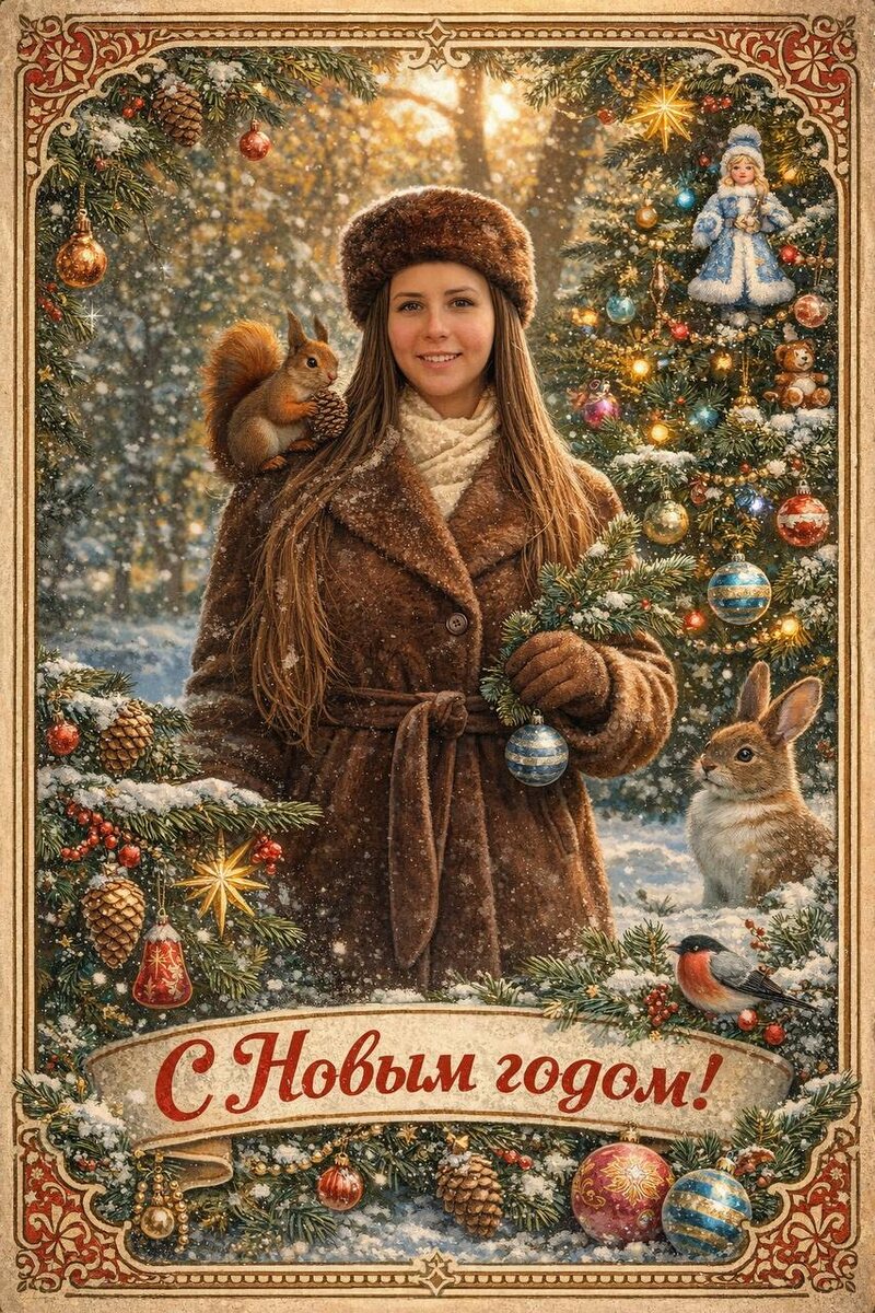 🤩😶 😶😶😶😶😶😶😶😶😶😶 😶😶😶😶😶 😶😶😶😶😶 🤩 Классная новогодняя открытка получилась 😍 Белка на моем плече особенно порадовала 🤣Она передает всем привет и желает хорошего настроения 🐿️ ❤️ У нас уже выпал снег и теперь метёт метёт метёт ❄️🥰 Новый год на носу, а мне до сих пор не верится 😊 ❓Нравятся такие открытки? ❓У вас есть новогоднее настроение? ❓Подготовили подарки?