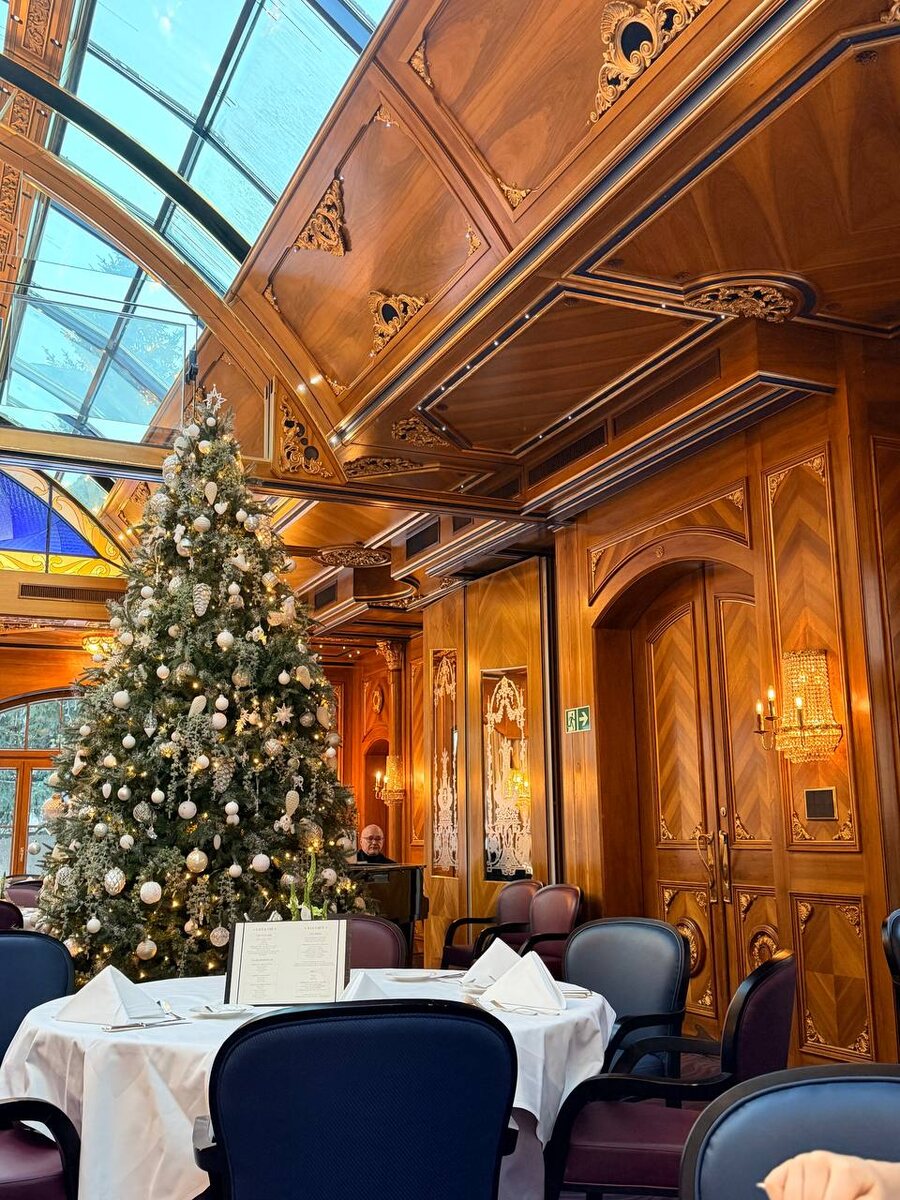 Очень давно хотелось исследовать разные горнолыжные курорты, идеальный тайминг это сделать - когда мы оба не катаемся 😝. То есть если не понравится, не так обидно хотя бы. Сам городок на нас не произвел никакого положительного впечатления, очень ровное восприятие, часто было чувство «пластик фантастик» из-за активной нацеленности на азиатский и Американский рынок. Швейцарского тут мало, а это удивительно, ведь город старинный. Везде рекламы, биллборды, даже макдоналдс канонический, музыка из американского кристмаса. Думаю, будет честным не создавать финальное мнение, потому что сейчас новогодние каникулы, а это всегда месс эраунд. Мы остановились в старейшем отеле - zermatterhof, опираясь на мысль, когда «олд = голд», но и тут полный джингл белз. Ощущение лас вегаса даже на чек-ине с консьержами золотые ключи. После заселения, кстати, нам выдали ваучер на бесплатный напиток в баре. 🙃 Отель мне не понравился, написать ничего про него не могу. Неуютный, хотя с претензией. Удивительн