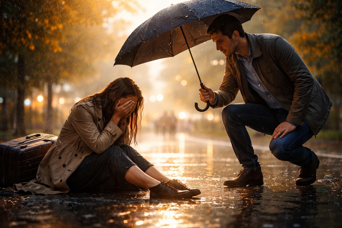 Она подняла глаза. Перед ней стоял мужчина, протягивая руку и зонт. В его взгляде не было жалости — только участие. Марина хотела отказаться, но силы покинули её. Она позволила помочь себе подняться.