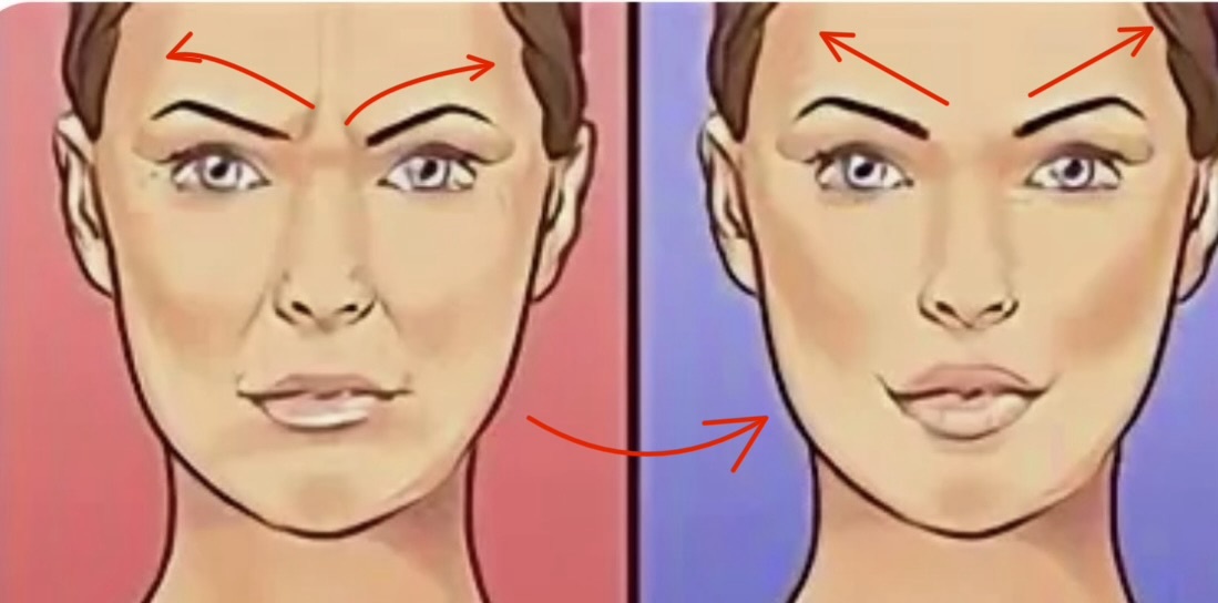 Довольно популярнее упражнение, если нужно не только расслабить брови, но ещё и разгладить морщины на лбу.