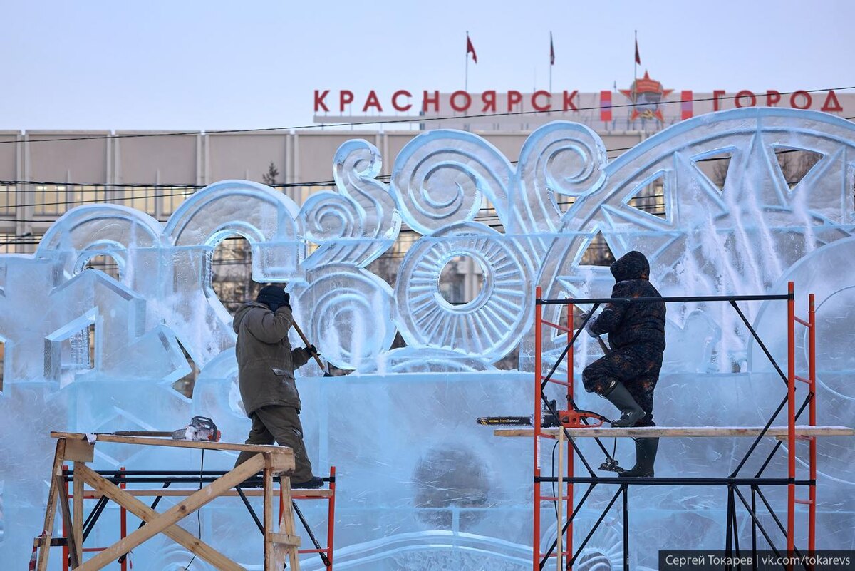 На Театральной площади готовятся к фестивалю "Волшебный лед Сибири". В этом году он будет проходить в десятый раз с 6 по 17 января.