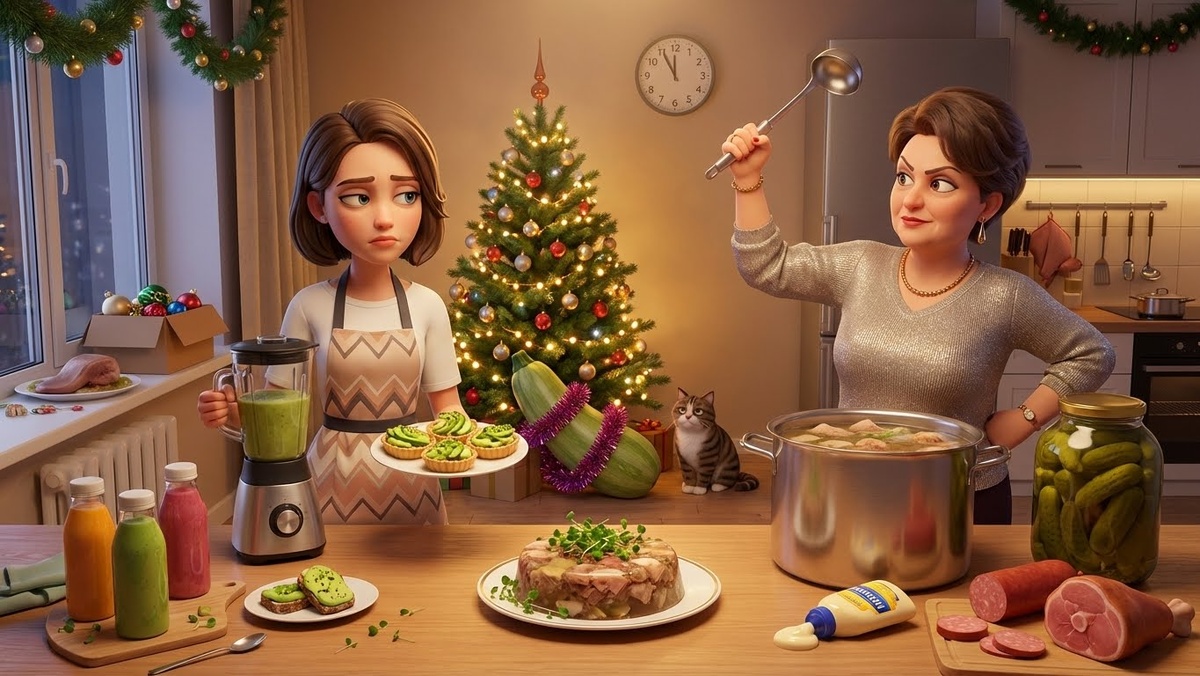 Тридцать первое декабря в семье Игоря всегда проходило по одному сценарию: Марина готовила «лёгкие закуски», а Галина Петровна входила в квартиру за пять часов до курантов с объёмом провизии, способным прокормить небольшое пехотное подразделение. — Мариночка, деточка, я пришла спасать праздник! — Галина Петровна сбросила шубу, оставшись в парадном люрексовом свитере. — Я привезла правильный майонез. В твоём «йогуртовом соусе» даже витамины дохнут от скуки. Марина, которая в этот момент пыталась красиво выложить микрозелень на тарталетки с муссом из авокадо, глубоко вдохнула. — Галина Петровна, мы же договаривались: в этом году празднуем в стиле «диджитал-минимализма». Никаких тазов с едой.