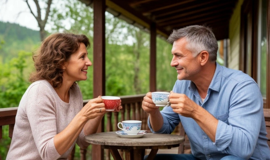 Их отношения развивались медленно, бережно. Андрей не торопил, не давил. Они много разговаривали, гуляли по берегу, вместе готовили ужины. Постепенно Катерина привыкла к его присутствию, к его голосу, к его прикосновениям. И однажды поняла уже не представляет жизни без него. Первый поцелуй случился в октябре, под шум осеннего дождя.