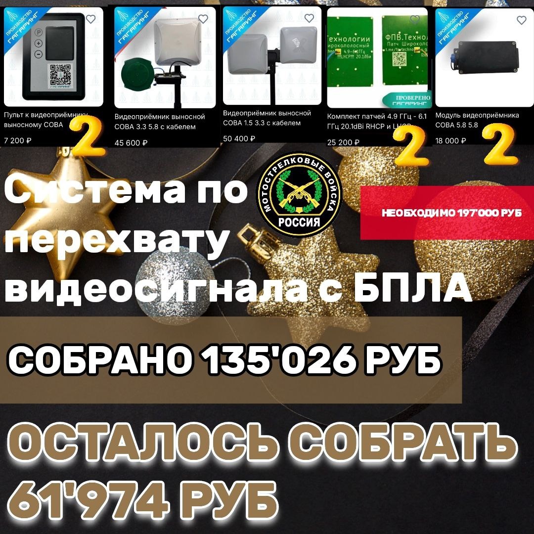 🍊 Но все помним, что есть парни, благодаря которым, мы имеем эту возможность 🇷🇺 Спасибо всем огромное, друзья, за участие в акции в поддержку расчета "Ворон". Напоминаем, что мы ведём сбор на систему по перехвату видеосигнала с БПЛА противника - "СОВА". Мы почти у цели. ❗️Осталось собрать 61'974 руб.❗️ Спасибо огромное всем и каждому, кто поддерживает сбор! Любую посильную сумму можно совершить по номеру карты 💳2202208188194204 или по номеру телефона 📞+79530562233 Получатель - Светлана Владимировна Л. ("Сбербанк"). *Оборудование будем заказывать у производителя после 100% предоплаты. Срок изготовления - 45 дней ‼️