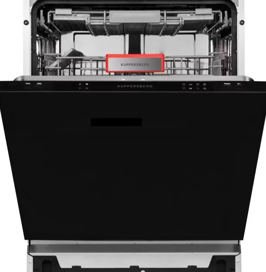 Kuppersberg GS 6057 — полноразмерная встраиваемая посудомоечная машина шириной 60 см с полной интеграцией под мебельный фасад. Модель рассчитана на ежедневное использование в домашних условиях и ориентирована на стандартные сценарии мойки без сложной автоматизации, но с достаточным набором режимов и функций для повседневной кухни. Машина относится к полноразмерному формату и устанавливается в стандартную нишу кухонного гарнитура. Полная встраиваемая конструкция предполагает закрытую панель управления, полностью скрытую за фасадом. Вместимость — до 14 комплектов посуды, что позволяет загружать: Такой объём оптимален для регулярной готовки и использования машины один раз в день. Рабочая камера выполнена из нержавеющей стали. Материал устойчив к воздействию горячей воды, моющих средств и перепадам температуры. Гладкие поверхности не впитывают запахи и упрощают уход. Внутренняя геометрия камеры классическая, без сложных выступов. Это упрощает размещение крупной посуды и снижает риск накоп
