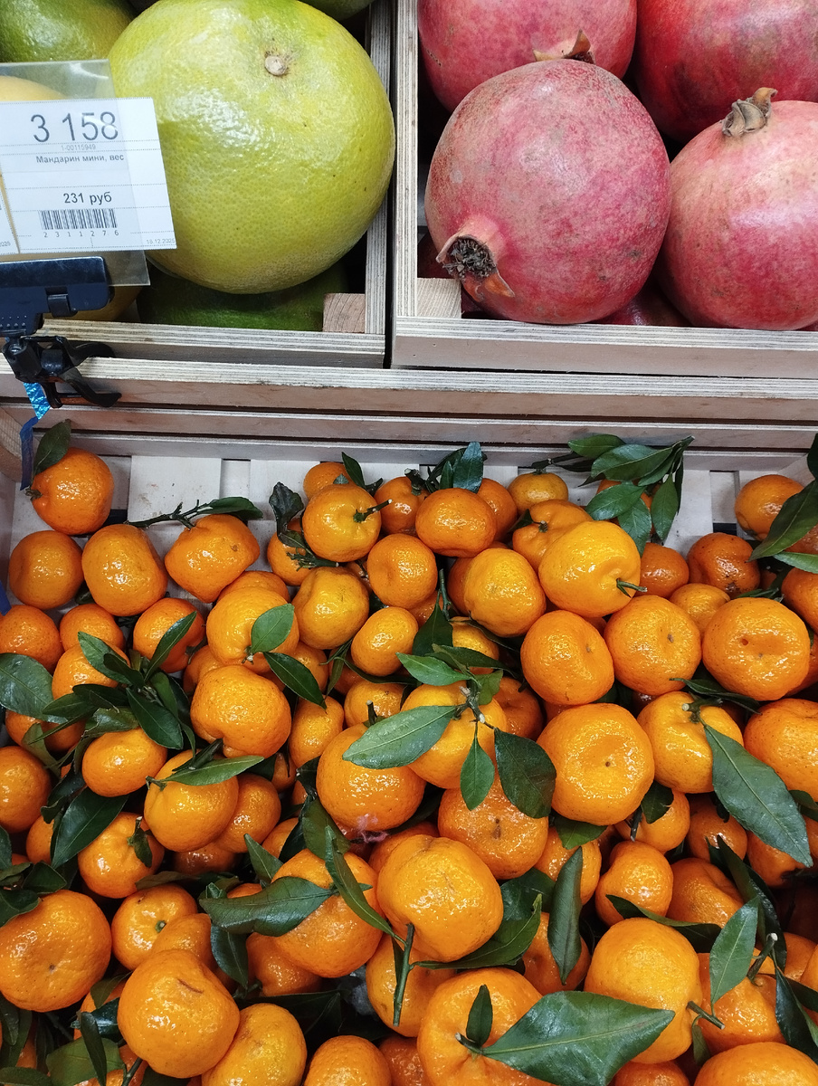 И главные фрукты на праздничном столе. Цена, конечно, хорошая, но не слишком низкая. На рынке абхазские мандарины по 150 рублей за килограмм.