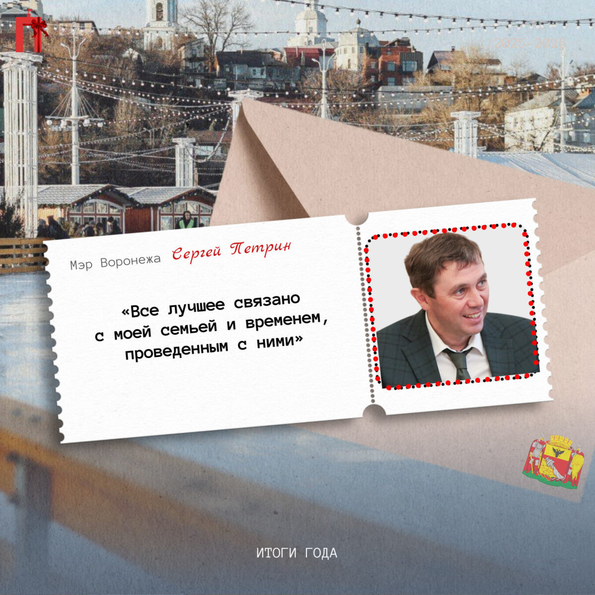 Редакция «Площади» решила узнать, как прошел год у мэров самых крупных городов Черноземья. Ведь зачастую именно по состоянию облцентра оценивают положение региона. Мэрам редакция подготовила более личные вопросы, в которых интересовалась отношением глав к различным аспектам их работы именно через призму личности. Так, первый в очереди – глава городского округа города Воронеж Сергей Петрин, который был довольно лаконичен в своих ответах. – Какое событие в уходящем году вы можете назвать личным провалом/успехом? Что сделали для лично Вы для Воронежа? «Как успехи, так и неудачи, пусть оценивают жители. Именно для них работаю я и вся команда администрации. Радует, что горожане нас ругали и хвалили, обращались с просьбами и писали, что сделано. Считаю успехом, что есть обратная связь от жителей!». – Назовите самое лучшее воспоминание в 2025 году. «Все лучшее связано с моей семьей и временем, проведенным с ними». – Какой самый лучший подарок вы получали в честь Нового года? «Два года назад с