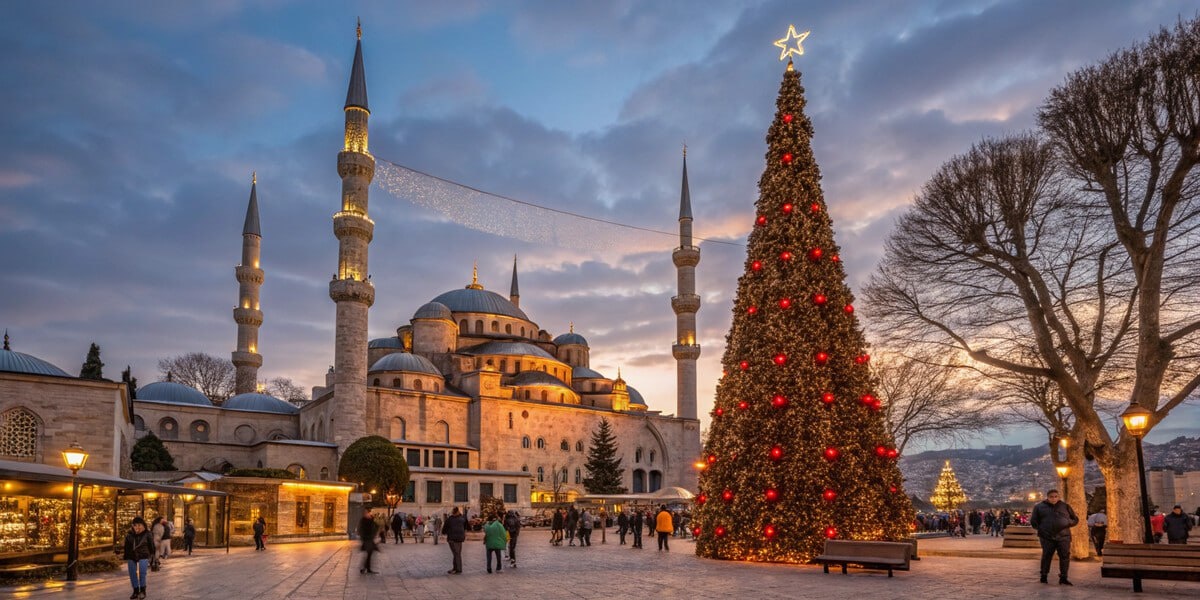 🎄Новый год в Турции отмечают дважды. По древнему тюркскому обычаю праздник приходится на 21 марта и называется Навруз. Однако большинство светских семей и туристов предпочитают отмечать Новый год в ночь с 31 декабря на 1 января. В крупных городах ставят ёлки, украшают улицы гирляндами и запускают фейерверки в полночь. 🥗 Новогодний стол разнообразен и богат. Готовят овощные салаты с лёгкой заправкой, кебаб – главное блюдо. Некоторые семьи готовят фаршированную индейку по европейскому рецепту. Запекают рыбу и морепродукты, а на гарнир подают картофель, стручковую фасоль или овощное рагу. Завершают трапезу традиционными сладостями – медовой пахлавой или лукумом. Стол украшают свежими фруктами, особенно мандаринами, которые поспевают как раз к празднику. 🎁 Дети получают подарки от Ноэль Баба – турецкого Деда Мороза. Они пишут ему свои пожелания, а он оставляет подарки под ёлкой. Взрослые дарят друг другу недорогие, но символичные подарки и сувениры. 🎟 Самый желанный подарок – лотере
