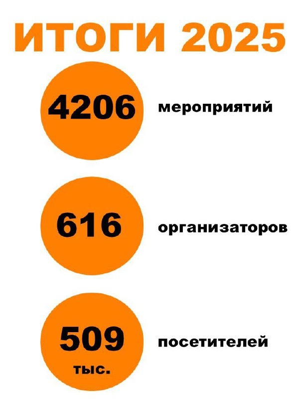 В канун Нового года принято подводить итоги и строить планы. Наш портал all-events.ru растет, благодаря вам и вашей активности, вашим мероприятиям и выставкам, за счет вашего интереса и желания узнать новое. В 2025 году на портале all-events.ru было опубликовано: 📍4206 деловых мероприятий 📍616 организаторов и 📍509 000 человек посетили наш сайт. 🔷У нас увеличилась база подписчиков и в 2 раза вырос наш Телеграмм канал. Это очень здорово!💥 В 2026 году мы хотим стать самой большой и полной площадкой деловых мероприятий по России, нарастив географию мероприятий. Мы рады, что экспертный контент по-прежнему пользуется высоким спросом и постараемся оправдать ваши ожидания. С наступающим 2026 годом!