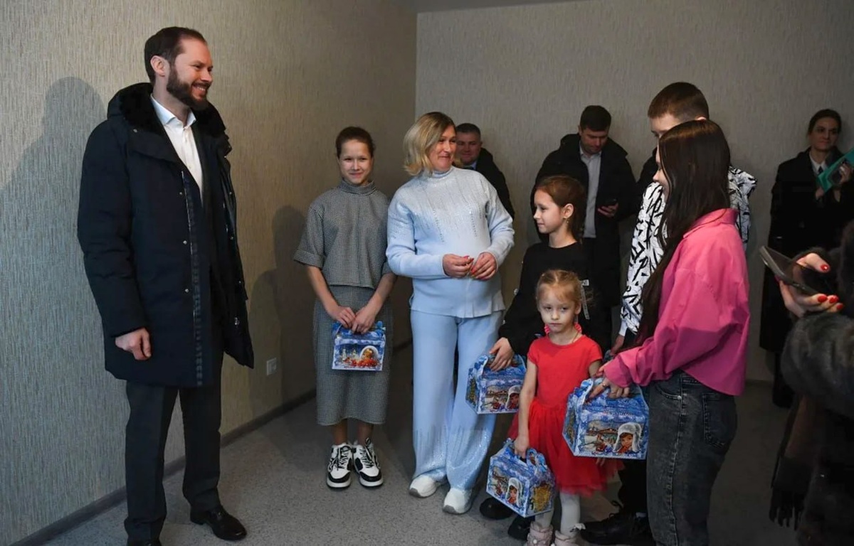 переселения граждан из аварийного фонда, и вручил ключи от квартиры многодетной семье Игнатьевых, которая встретит Новый год в новом жилье «Сегодня хороший повод – мы передали ключи многодетной семье по программе переселения из аварийного жилья в новые дома. Под Новый год они переехали в замечательную трехкомнатную квартиру. До конца года все квартиры, расположенные здесь, должны быть переданы жителям. Даю главе муниципалитета такое поручение, чтобы к Новому году люди могли начать обустраиваться в квартирах», – сказал Виталий Королев при общении с представителями СМИ. Всего в Селижаровском округе по программе новые благоустроенные квартиры получают более 120 семей – свыше 230 человек. Для этих целей в муниципалитете построено два четырехэтажных дома. Квартиры сданы с ремонтом: выполнена внутренняя отделка помещений, установлены газовые котлы. Также благоустроена придомовая территория. Юлия Игнатьева воспитывает пятерых детей. Скоро семья станет больше – многодетная мама ожидает еще