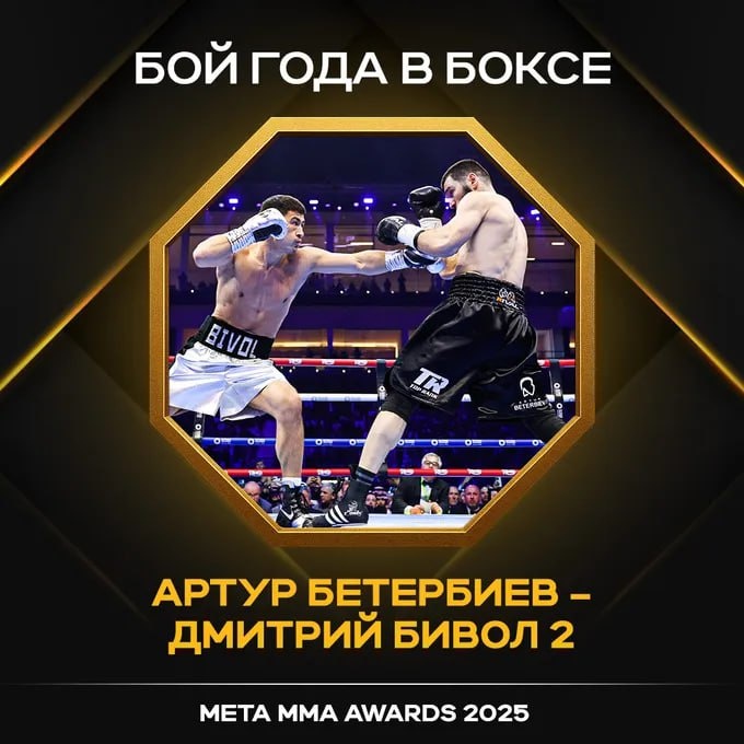 Реванш Дмитрия Бивола и Артура Бетербиева стал главным боксерским событием 2025 года и уверенно занял первое место в номинации «Бой года» Meta MMA Awards, набрав 78 баллов. 🥈 Альберт Батыргазиев — Нери Ромеро (44) 🥉 Павел Сосулин — Магомед Курбанов (32) На кону стояло всё — статус абсолютного чемпиона мира в полутяжёлом весе. Два бойца из России, ноль компромиссов и максимальное напряжение на протяжении всех 12 раундов. Формально — победа Бивола решением большинства судей. По факту — тактическое и физическое превосходство. Дмитрий сделал работу над ошибками после первого боя, заметно прибавил в выносливости и провёл реванш в высоком темпе от начала до конца. Он превзошёл Бетербиева по числу силовых ударов (85–78) и джебов (85–43), контролируя ход поединка и навязывая свой ритм. Это был бой высшего уровня — шахматы на максимальной скорости, где каждое решение имело значение. 👀 Теперь остаётся только одно: ждать трилогию. 👊 Подпишись на Meta MMA | Meta MMA в MAX | Наш канал в В